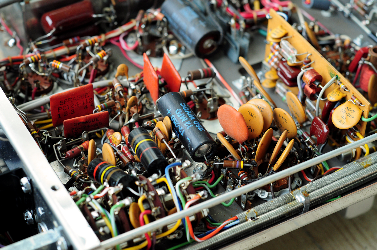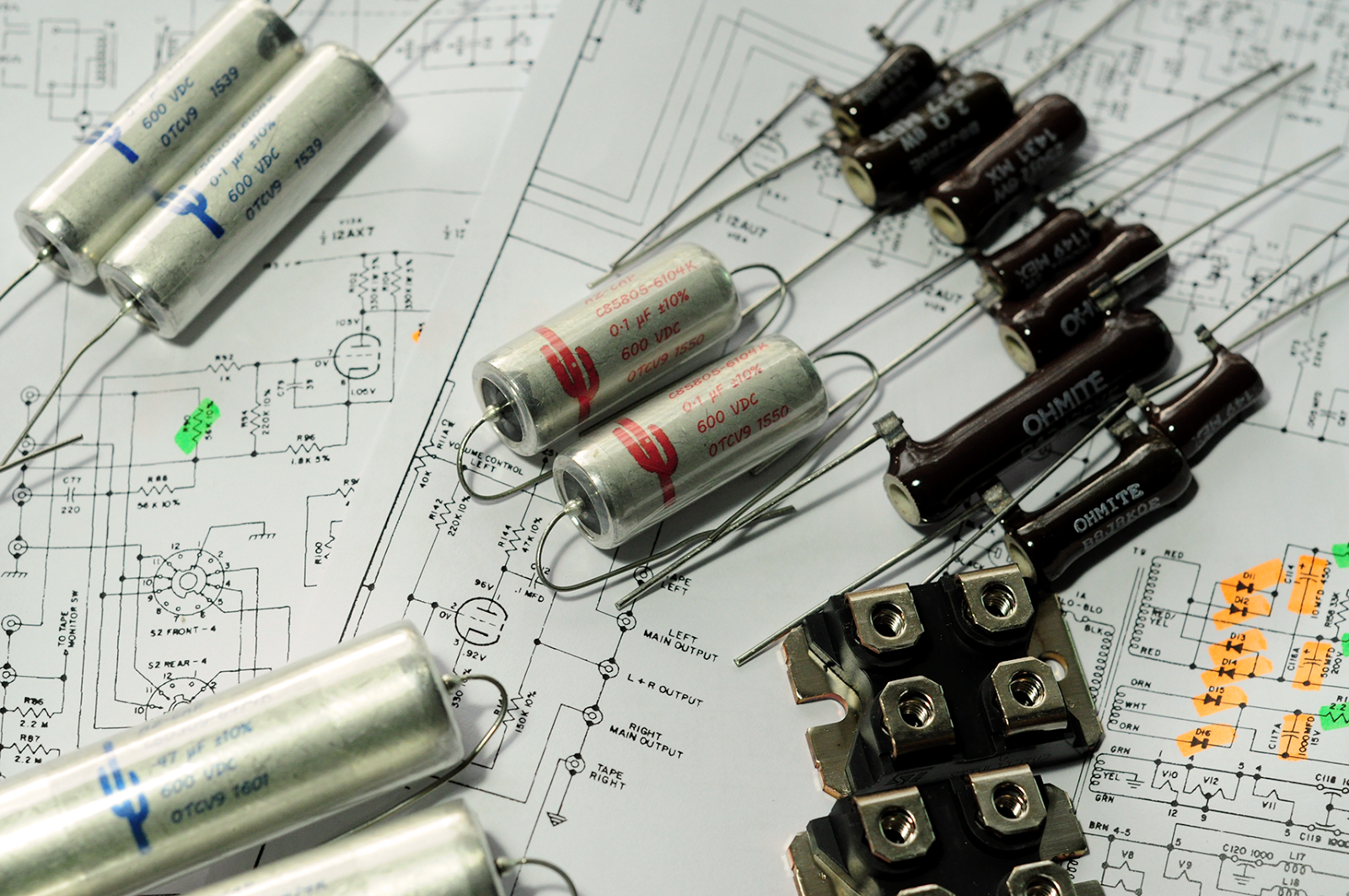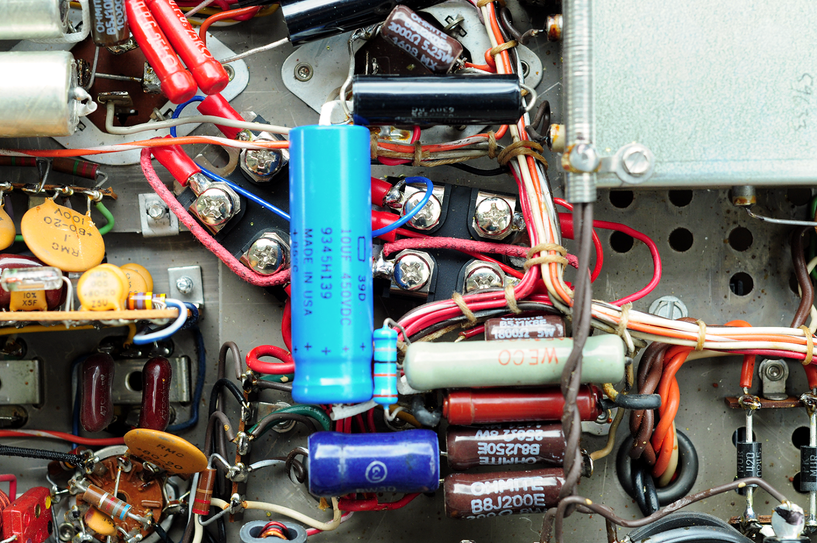 2W carbon composition and 5W cement wirewound resistors in power supply section.