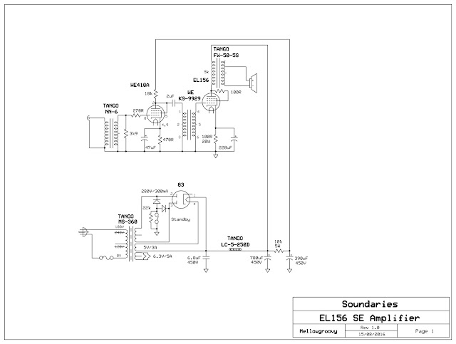 Schematic of renovated EL156 amplifier.